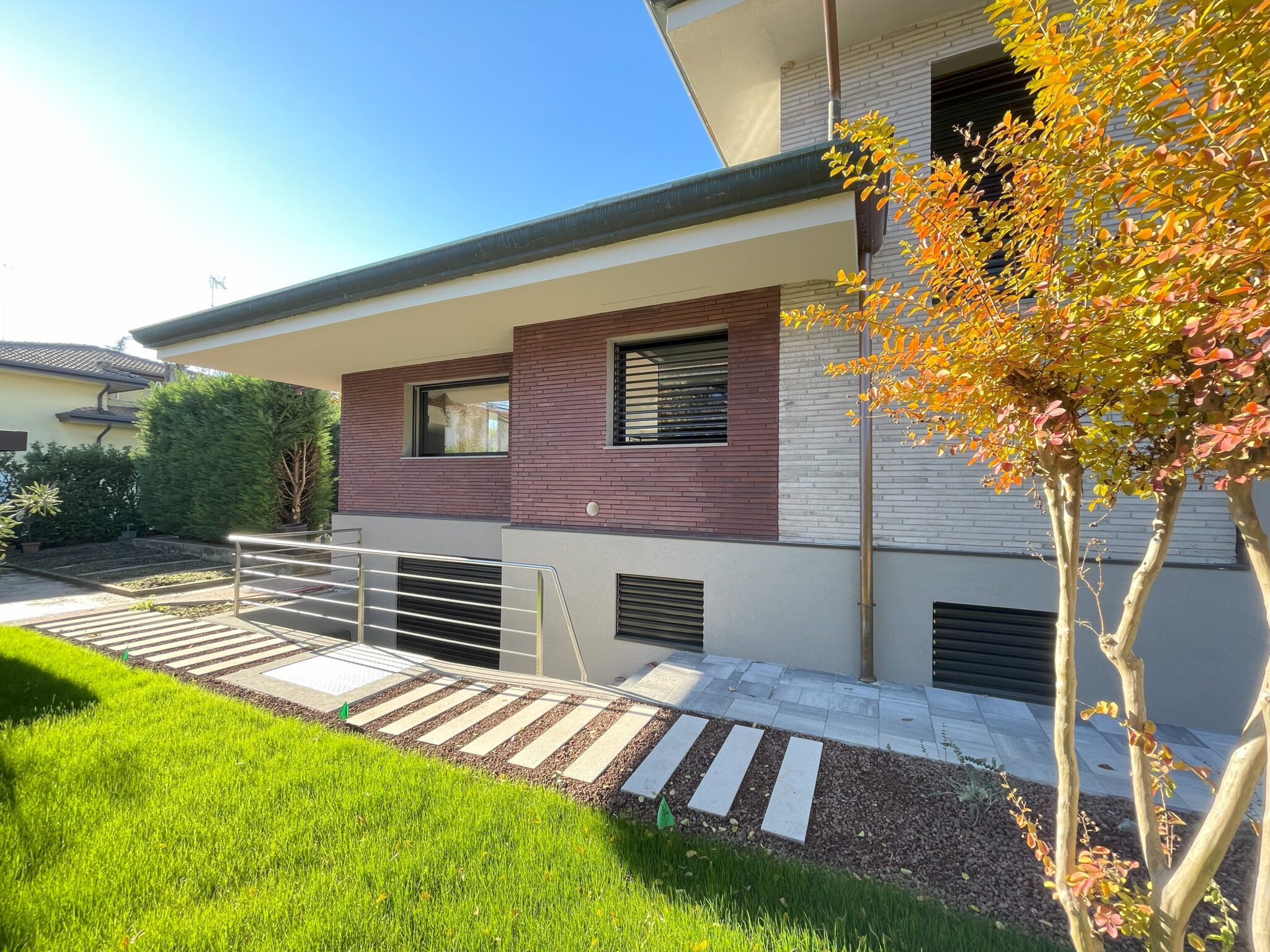 Dal punto di vista impiantistico ed energetico, la villa è stata completamente ripensata. Tutti gli impianti sono stati ricostruiti ex novo e integrati con soluzioni ad alta efficienza, consentendo il passaggio dalla classe energetica G alla classe A4. Gli interventi sull’involucro e sugli impianti hanno migliorato in modo significativo le prestazioni termiche e il comfort abitativo, riducendo i consumi energetici complessivi.