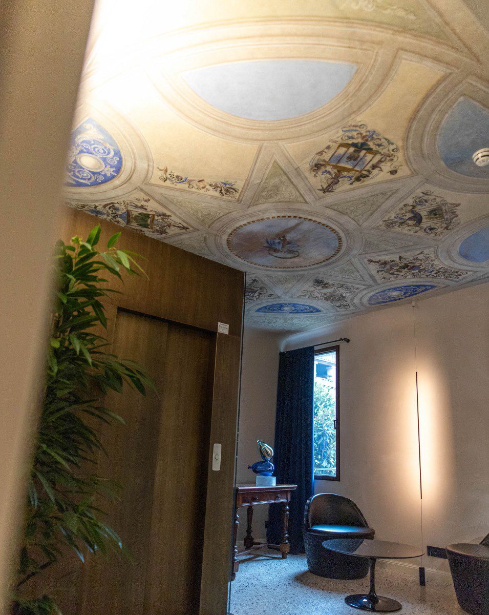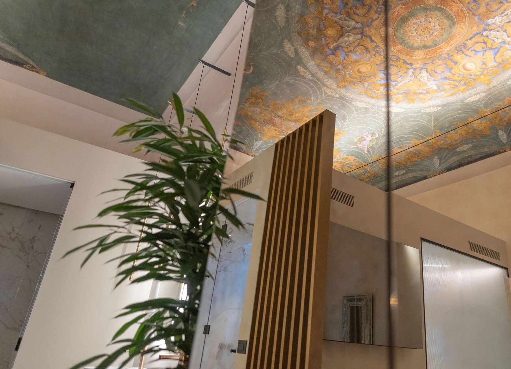 Grande rilevanza ha avuto il restauro degli apparati artistici, con particolare riferimento agli ambienti del Piano Nobile, dove decorazioni, superfici e materiali originari sono stati conservati, consolidati e reintegrati secondo criteri filologici.