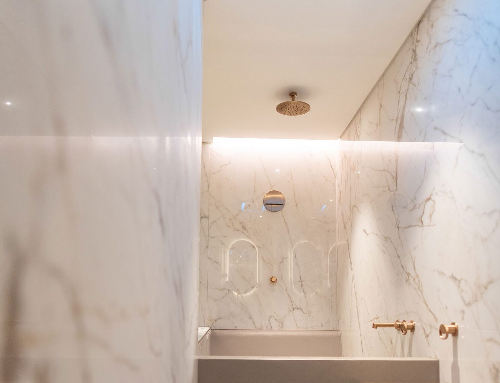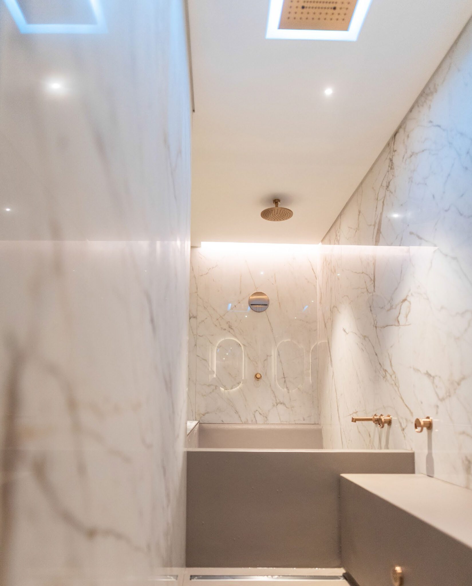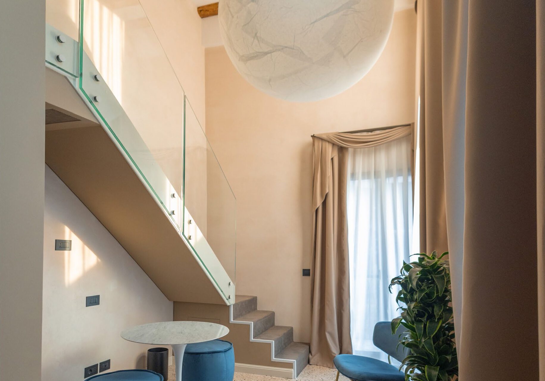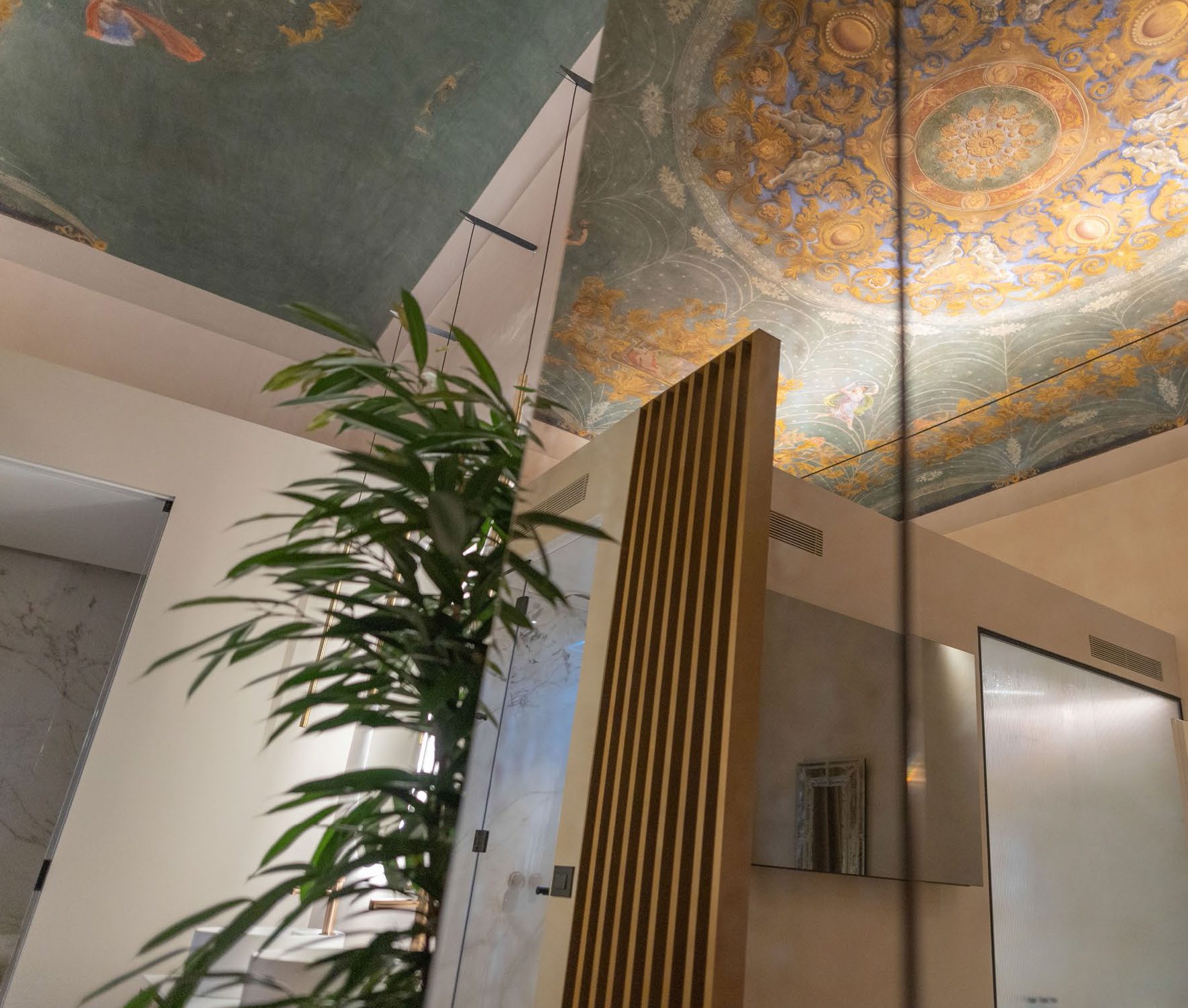 Il progetto ha previsto inoltre la ricomposizione del distributivo delle suite, con l’obiettivo di migliorare la funzionalità degli spazi e la qualità dell’esperienza abitativa, mantenendo un equilibrio tra comfort contemporaneo e rispetto dell’impianto storico.