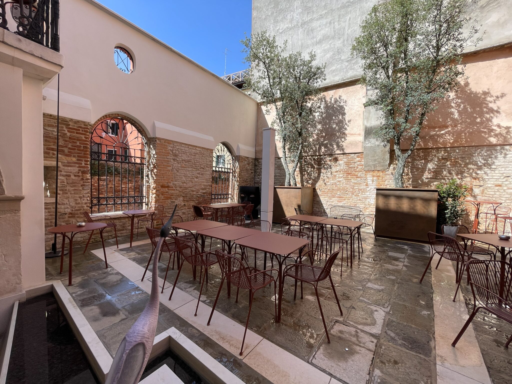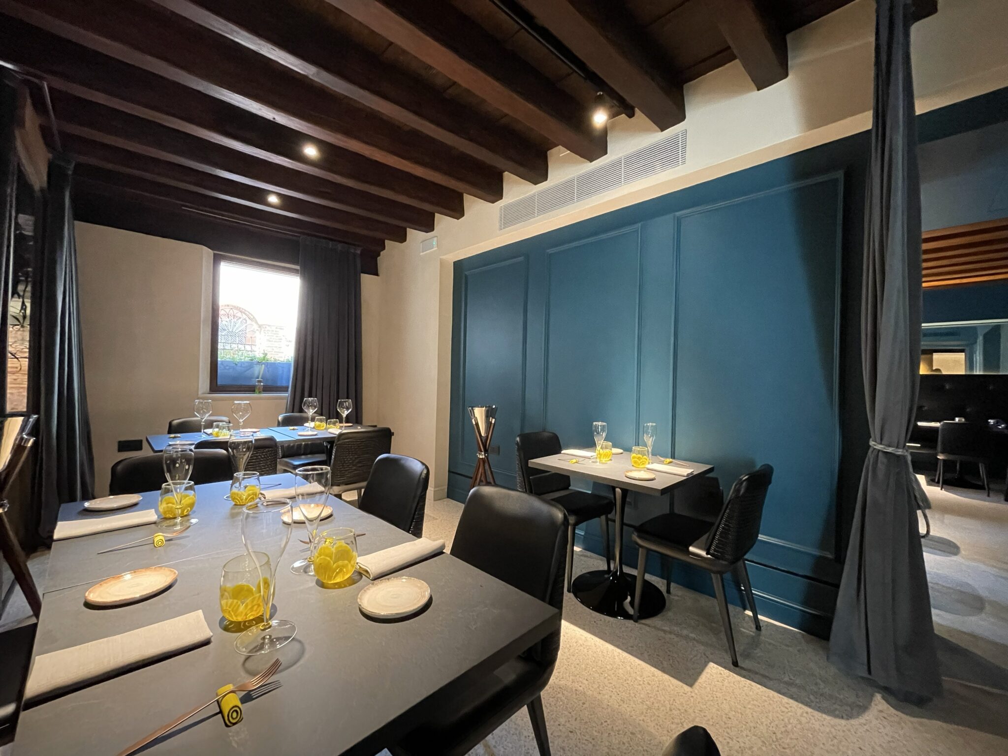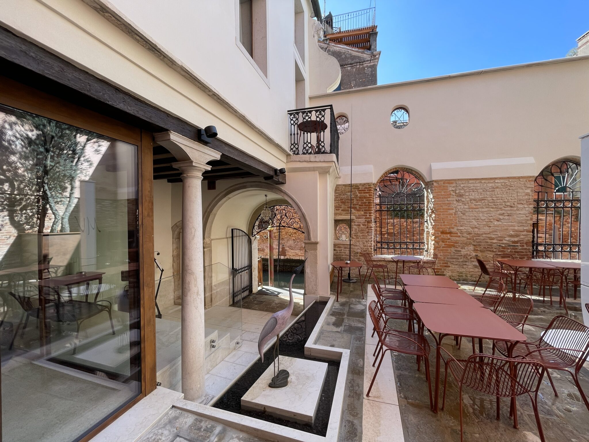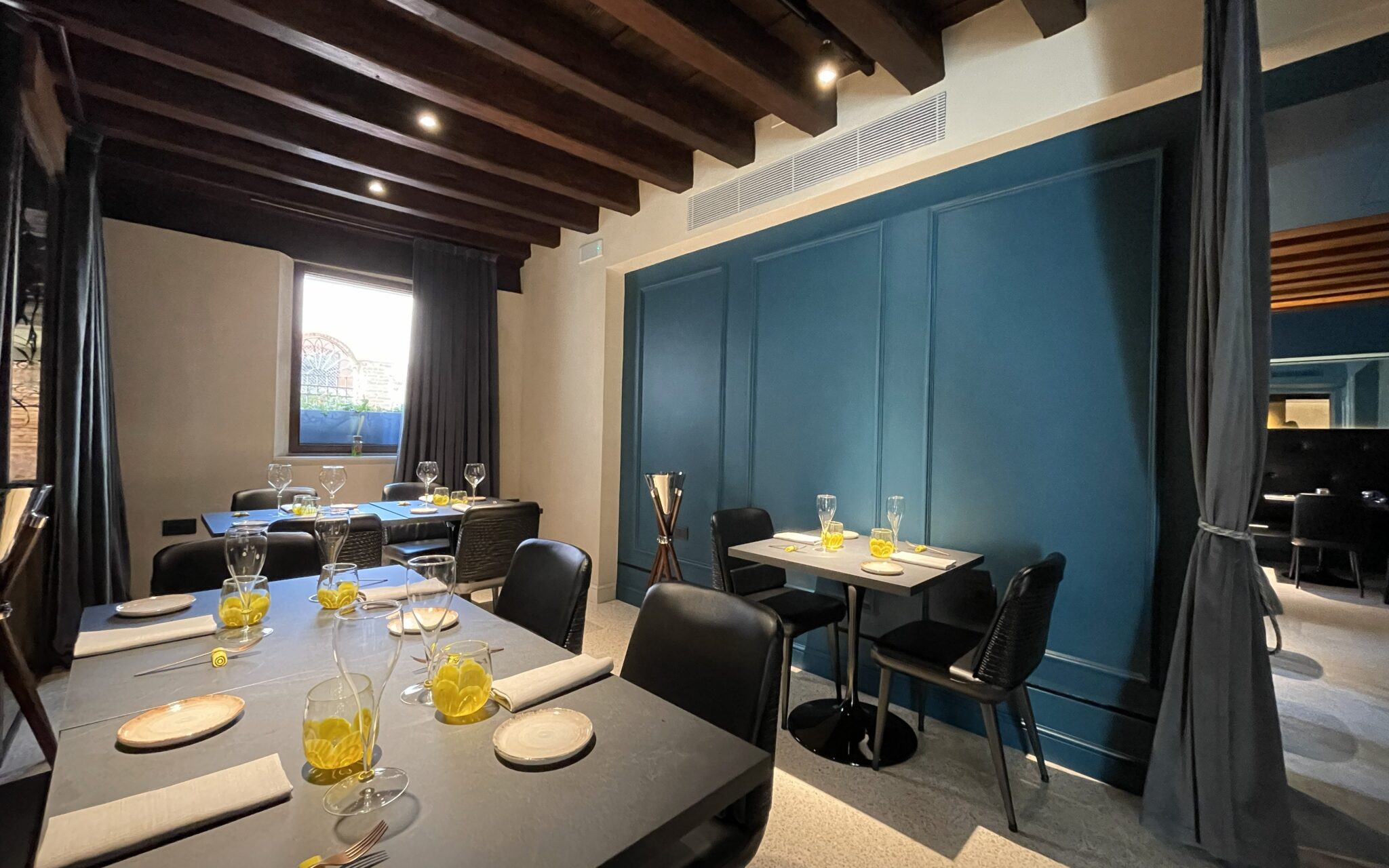 All’interno del palazzetto è stato inoltre integrato il ristorante MyVenice, concepito come parte integrante dell’esperienza del luogo. Gli spazi della ristorazione dialogano con l’architettura storica attraverso scelte materiche e distributive coerenti, contribuendo a rafforzare l’identità dell’edificio come luogo di accoglienza e convivialità.