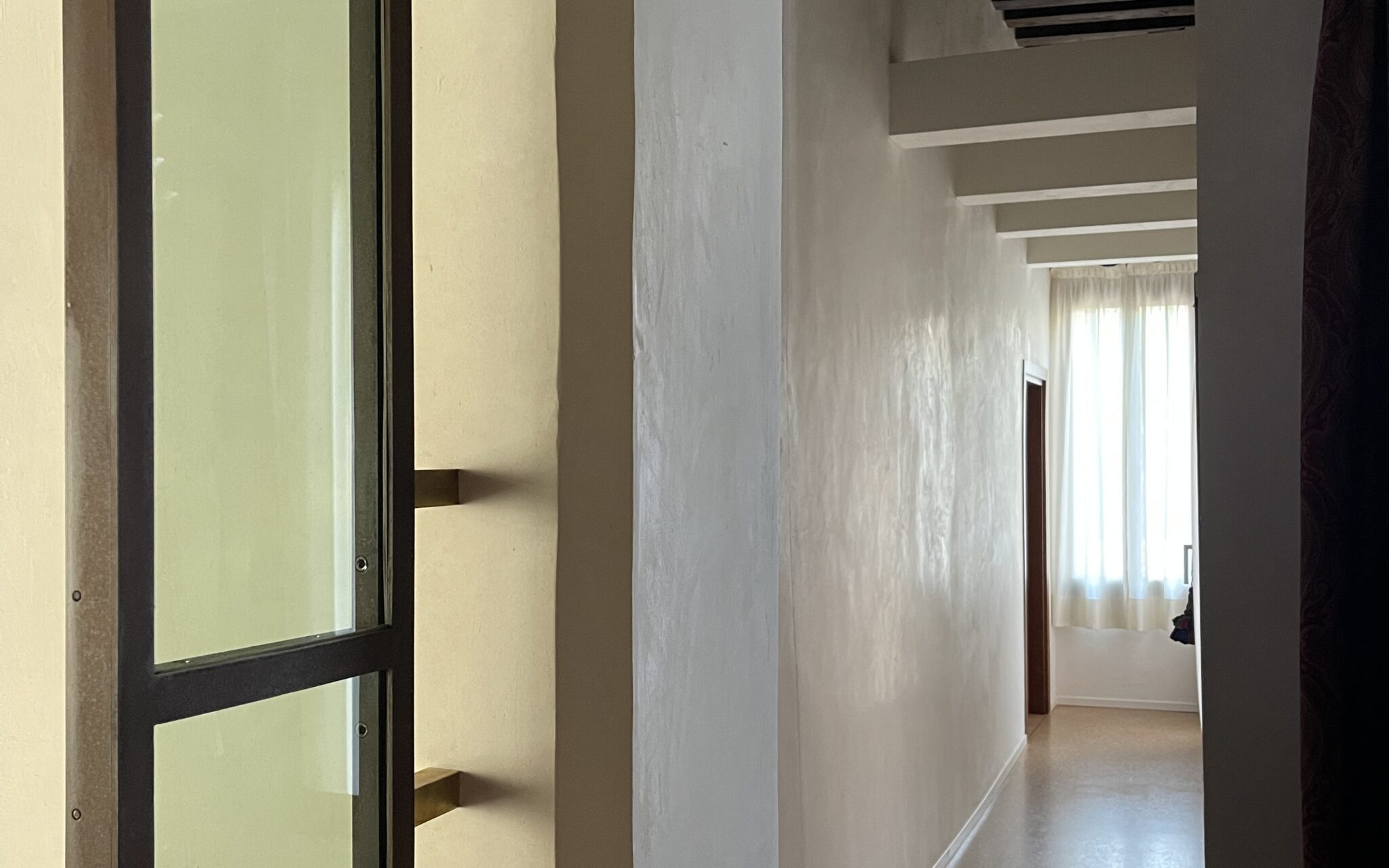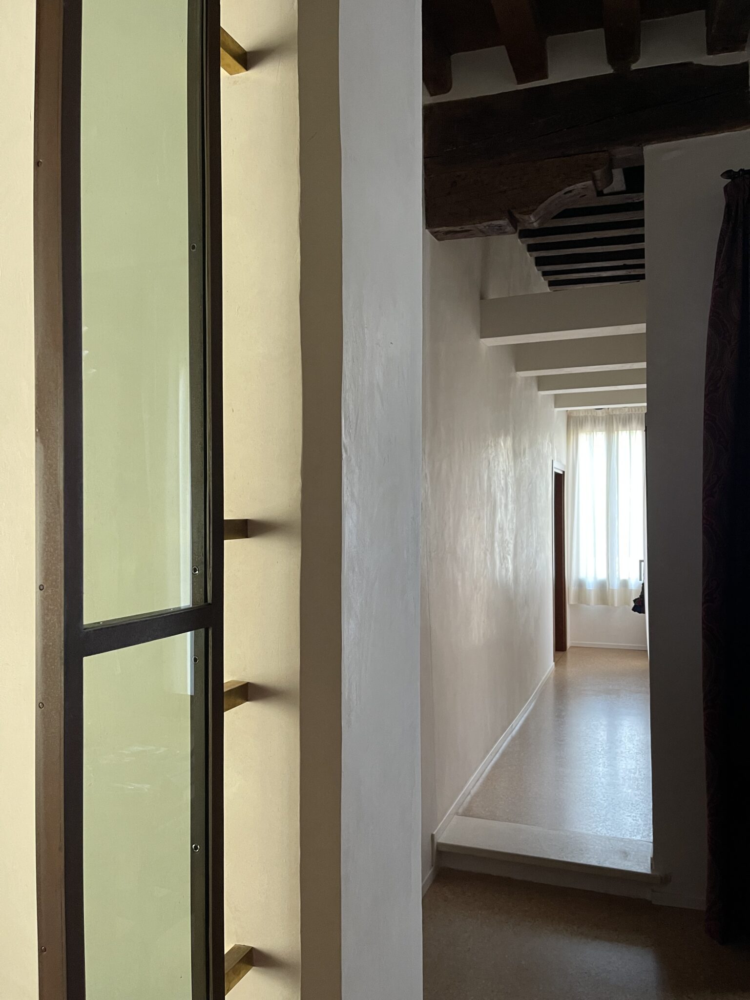 La luce naturale diventa parte integrante del progetto, incorniciata e guidata dai nuovi elementi architettonici, contribuendo a rafforzare la profondità degli spazi e la continuità visiva tra gli ambienti. Il risultato è un intervento di completamento che non altera l’impianto storico, ma lo valorizza, restituendo al piano nobile una nuova funzionalità.