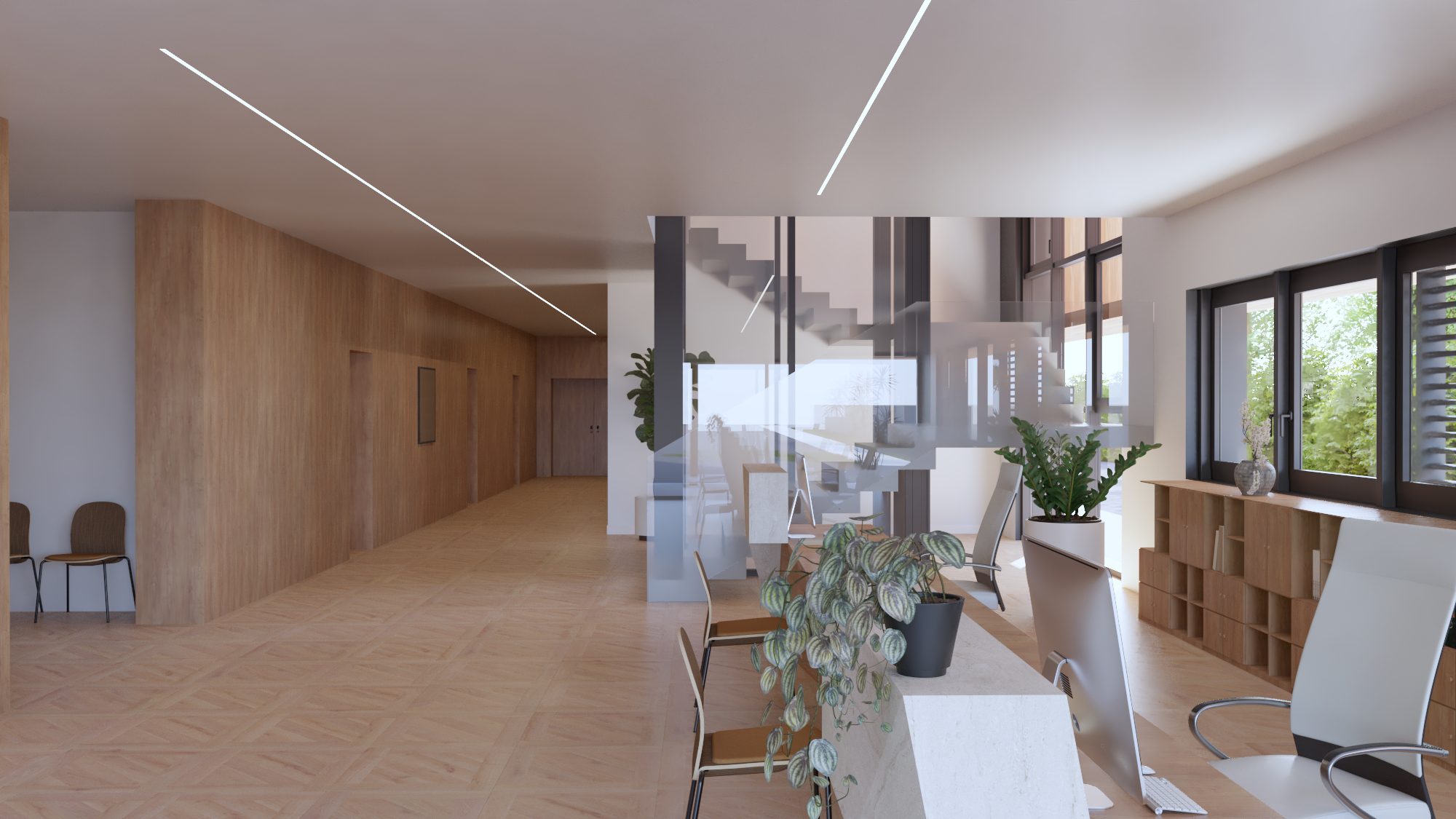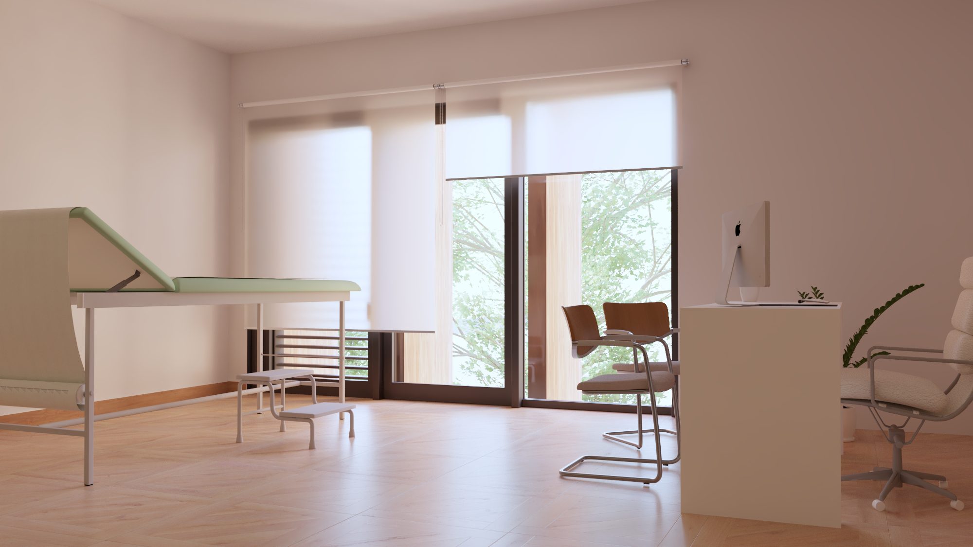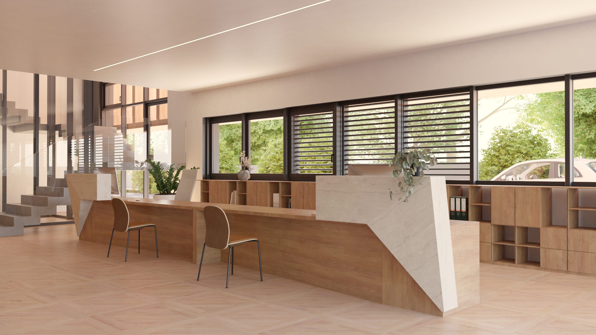 Gli spazi interni sono pensati per assicurare comfort, chiarezza distributiva e benessere psicofisico, sia per i pazienti sia per il personale sanitario. La luce naturale, filtrata dalle schermature, accompagna i percorsi e le aree di attesa.