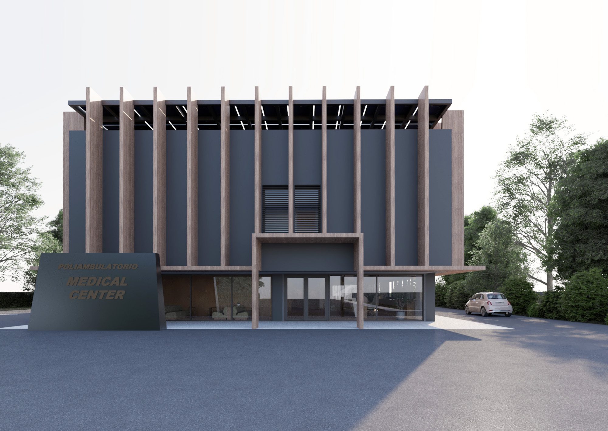 Il progetto del poliambulatorio nasce dall’idea di coniugare funzionalità sanitaria, qualità architettonica e attenzione all’ambiente. L’edificio si configura come un volume compatto e riconoscibile, caratterizzato da un sistema di schermature verticali che definisce l’immagine architettonica e contribuisce al controllo climatico degli spazi interni.