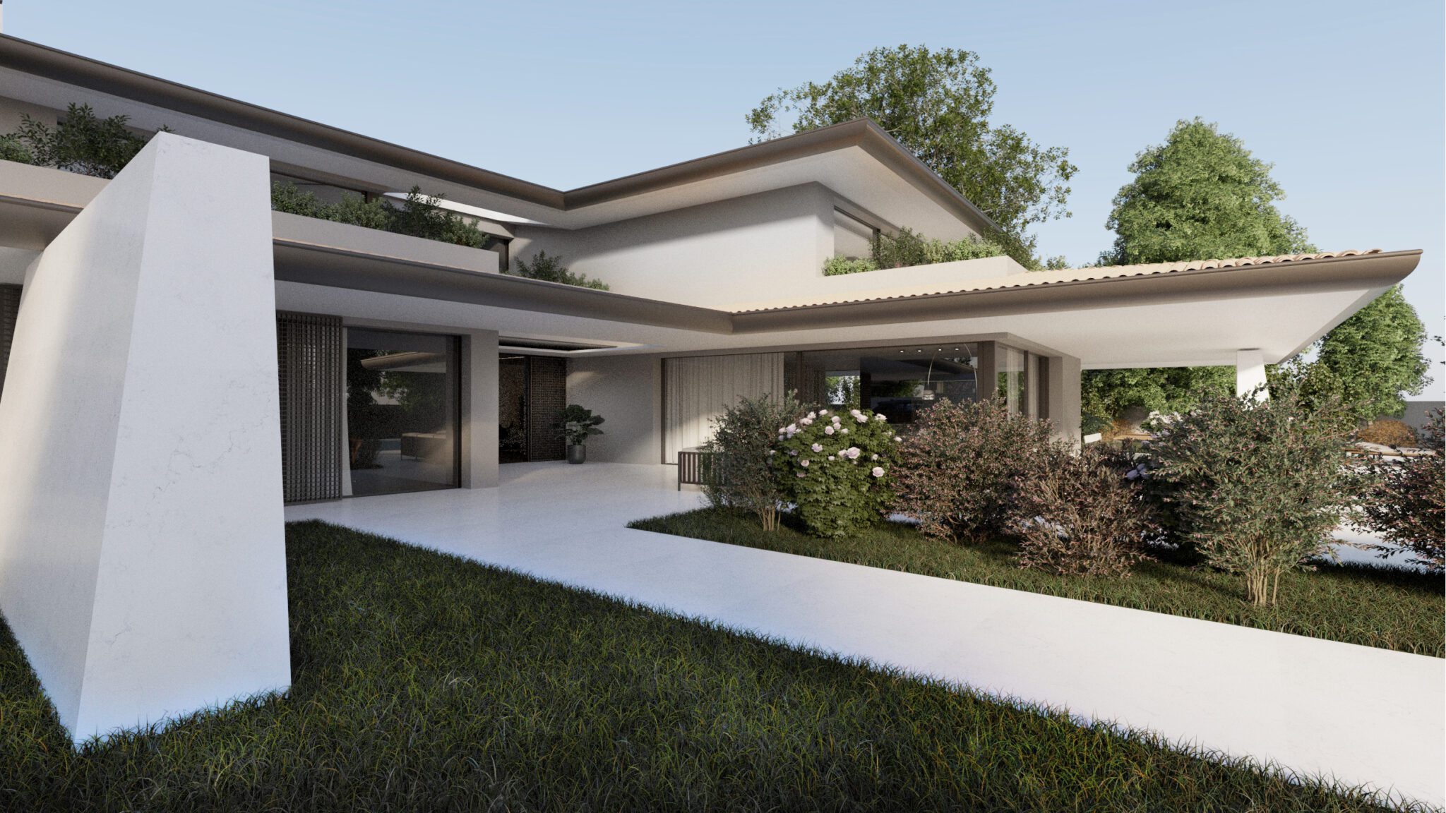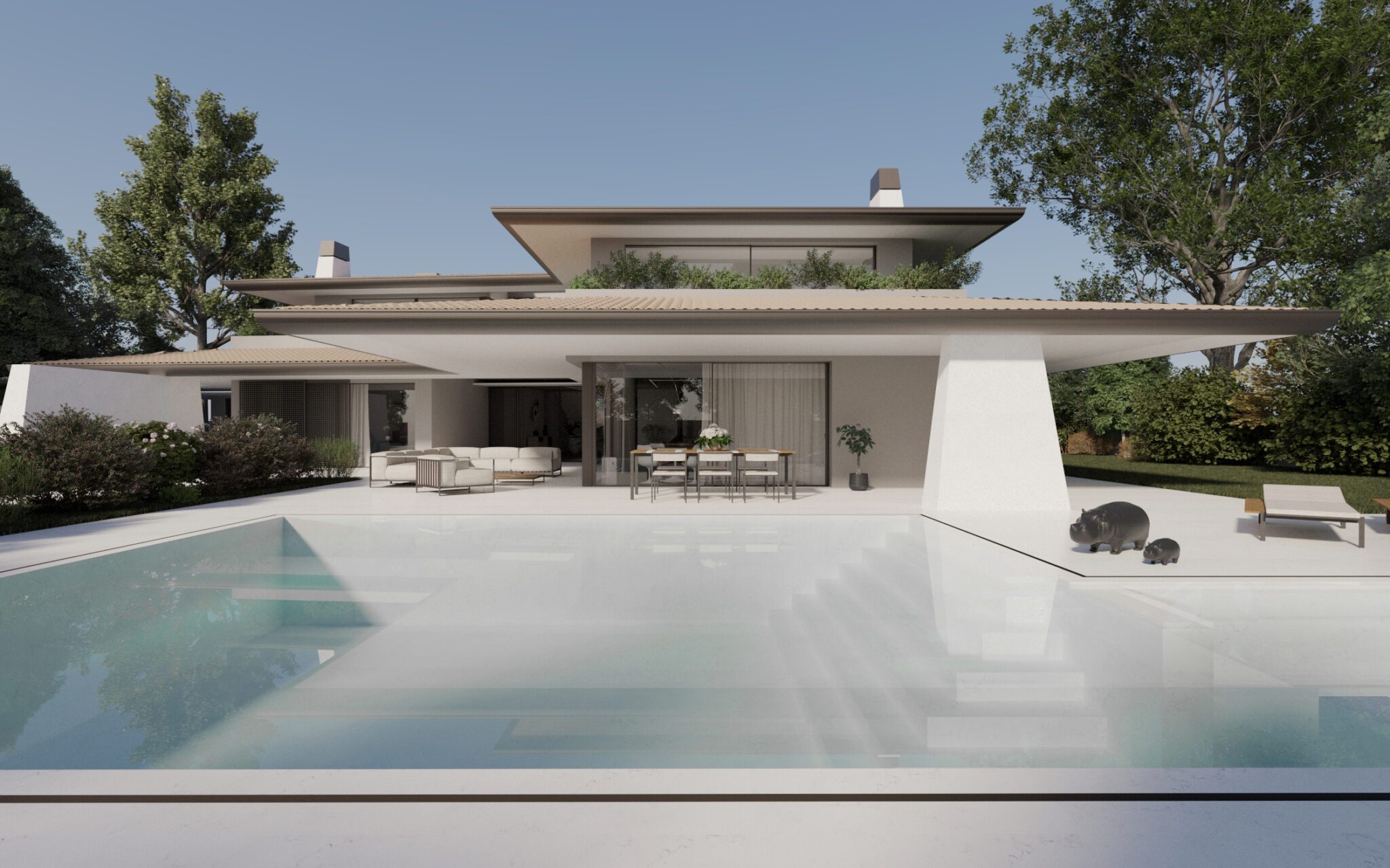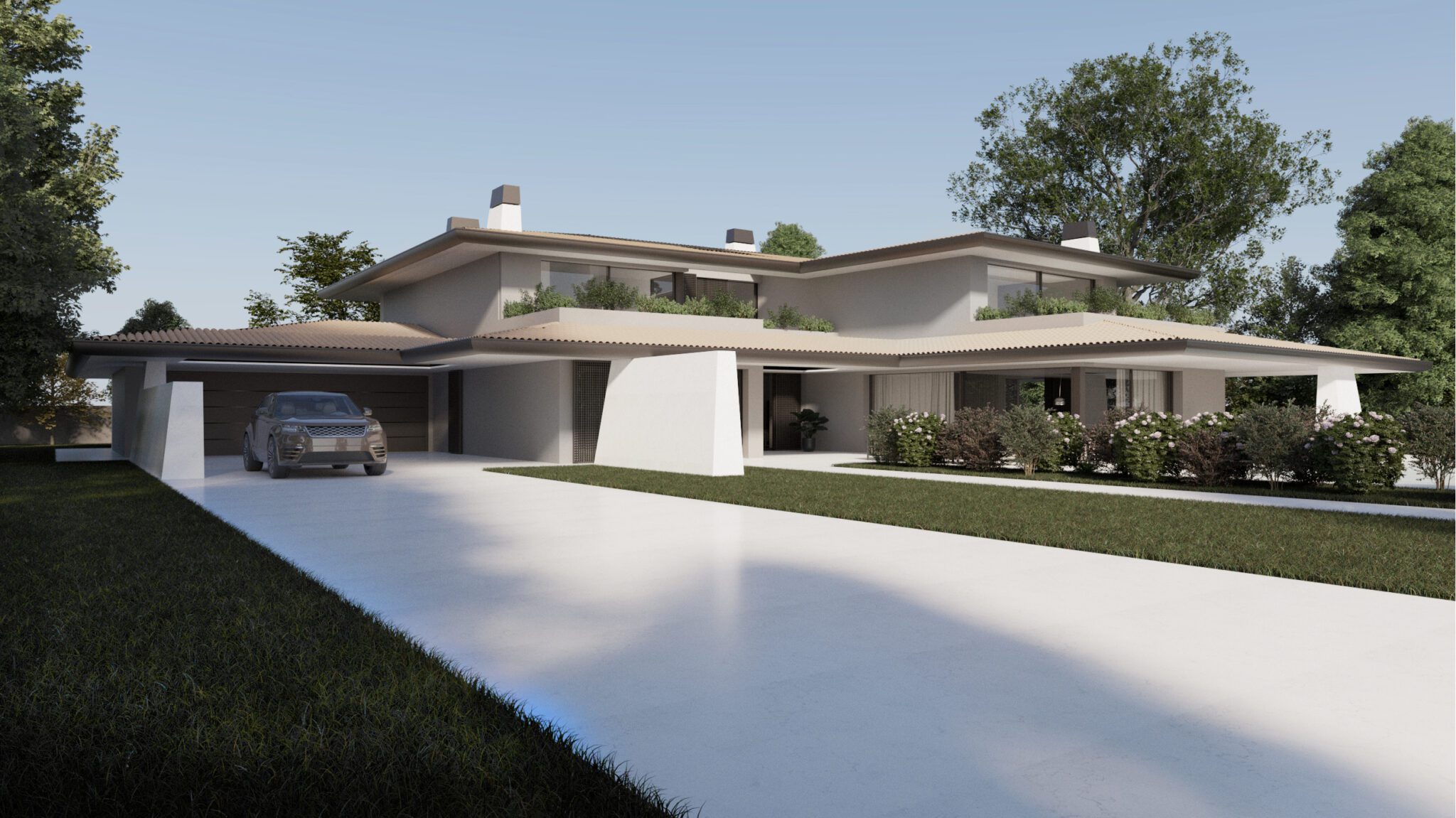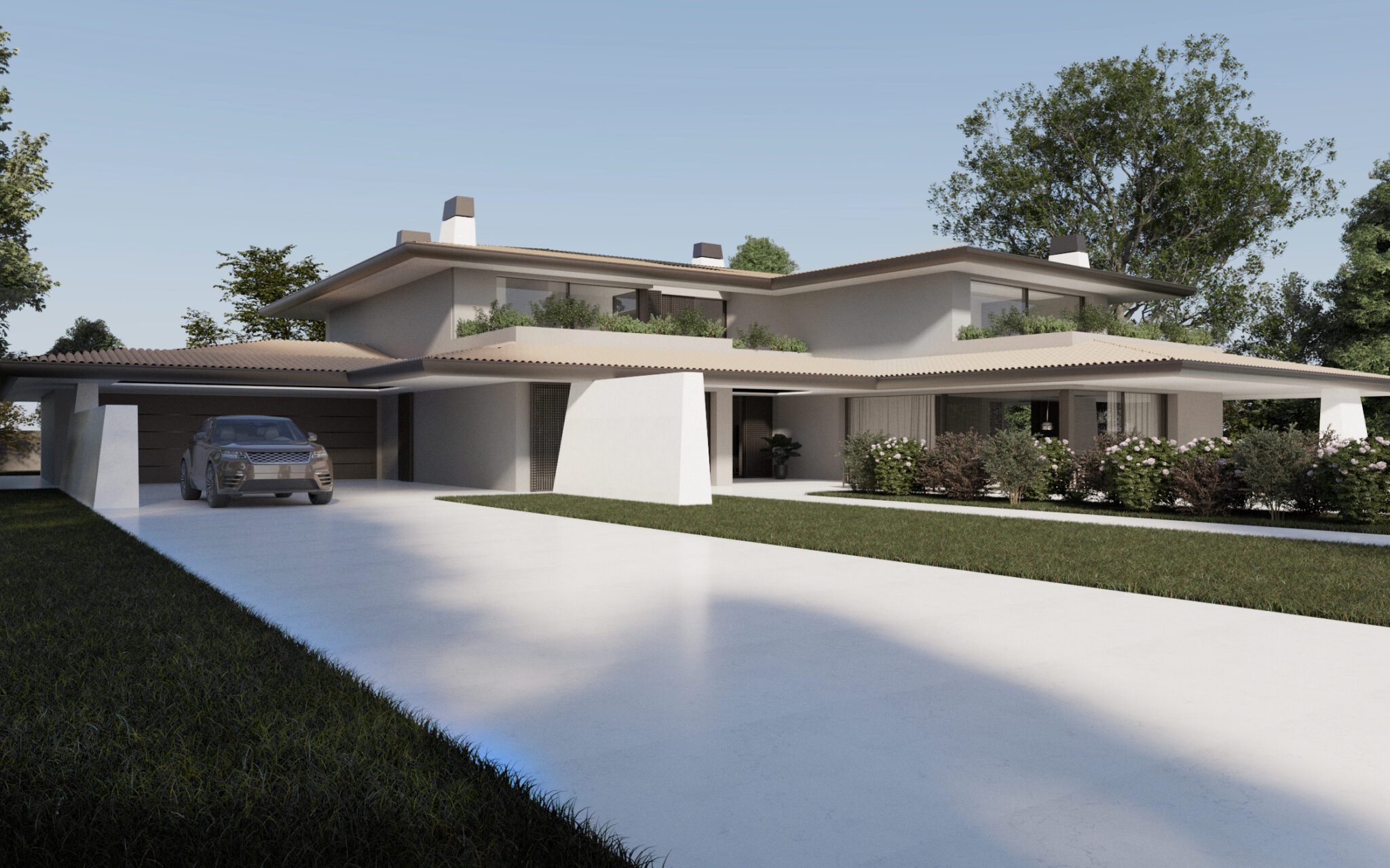 Una villa di circa 560 mq caratterizzata da linee tradizionali, progettata su due livelli all’interno di un lotto di 2100 mq; il piano terra è sviluppato per ospitare la zona giorno, studio, sala gioco, bagno ospiti e lavanderia mentre il primo piano è dedicato alla zona notte.