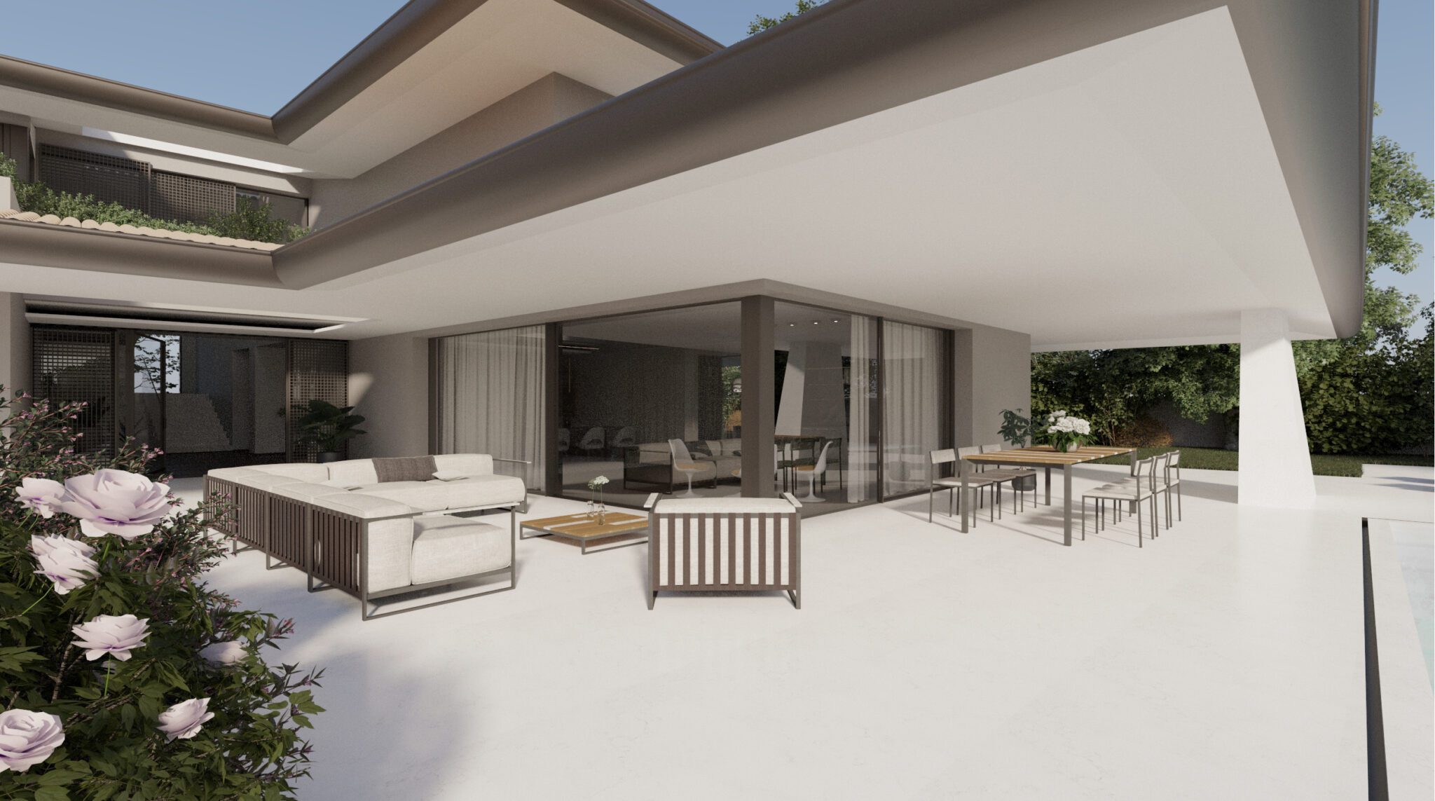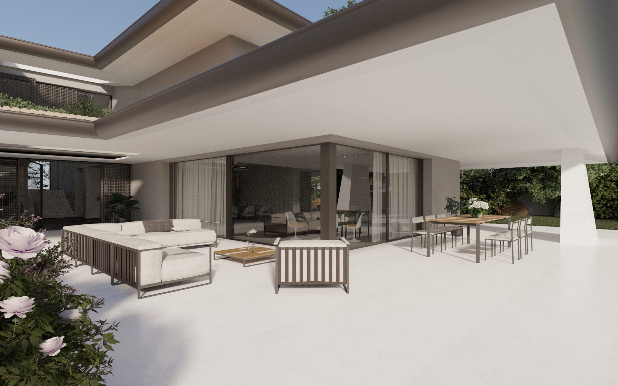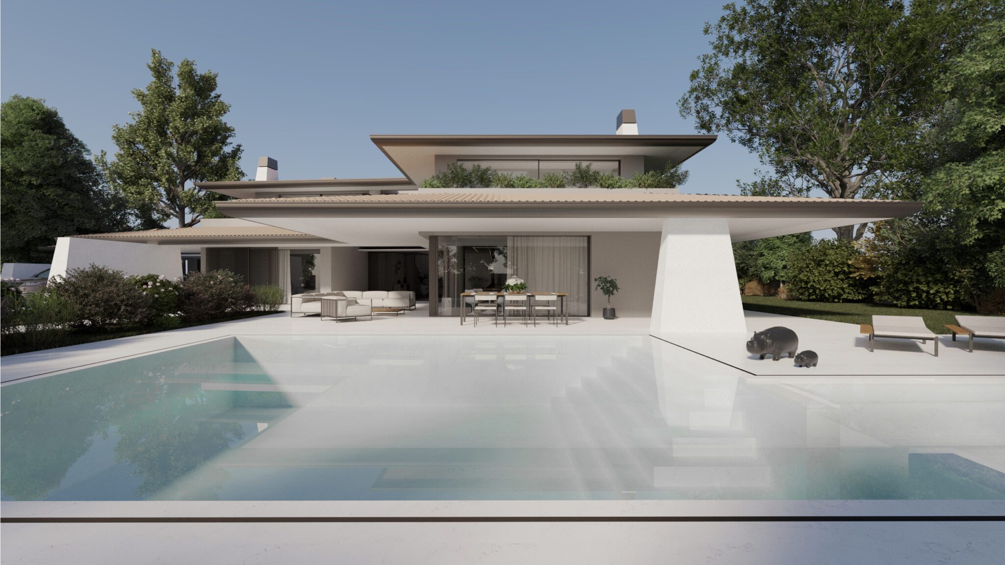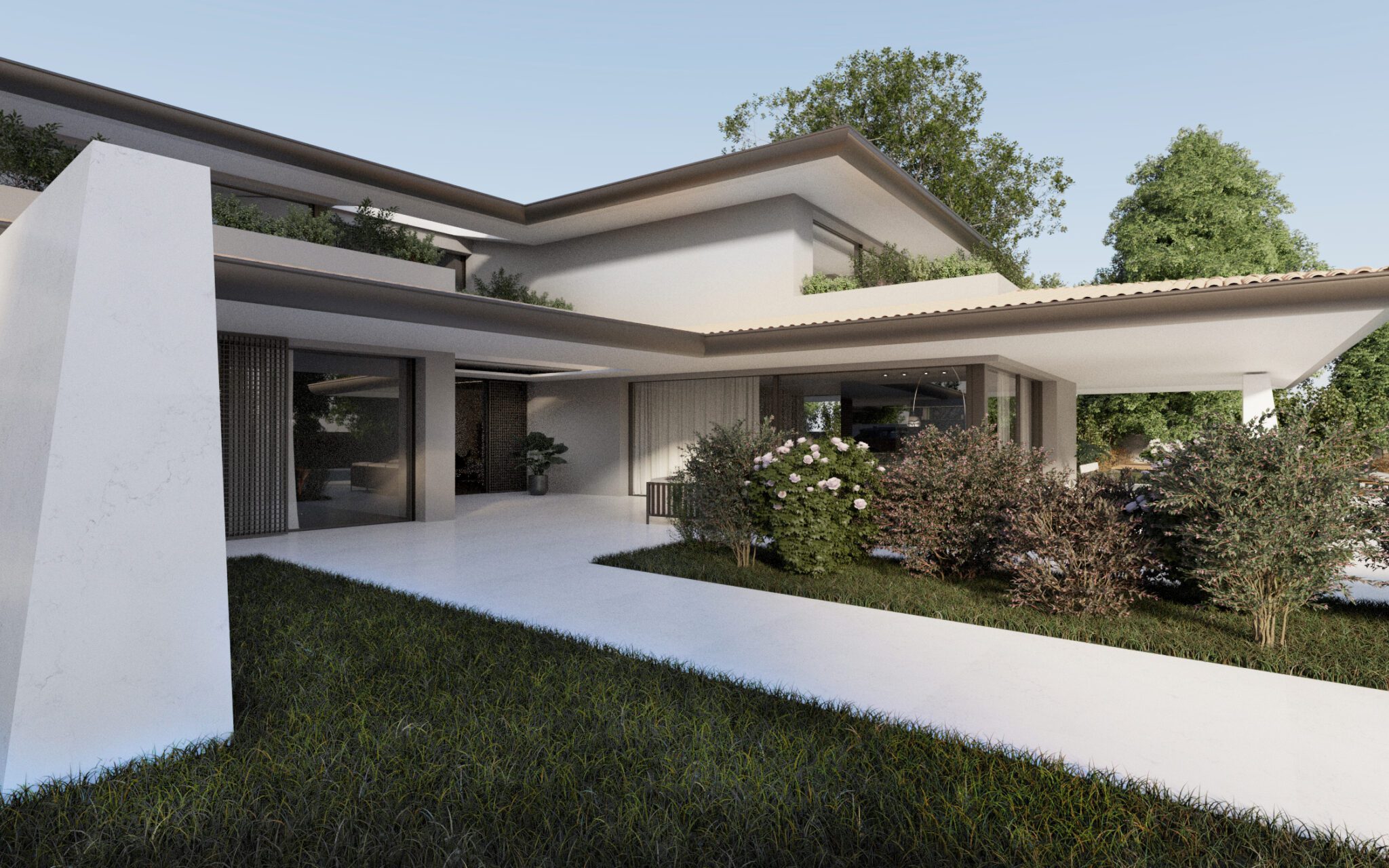 Una villa di circa 560 mq caratterizzata da linee tradizionali, progettata su due livelli all’interno di un lotto di 2100 mq; il piano terra è sviluppato per ospitare la zona giorno, studio, sala gioco, bagno ospiti e lavanderia mentre il primo piano è dedicato alla zona notte.