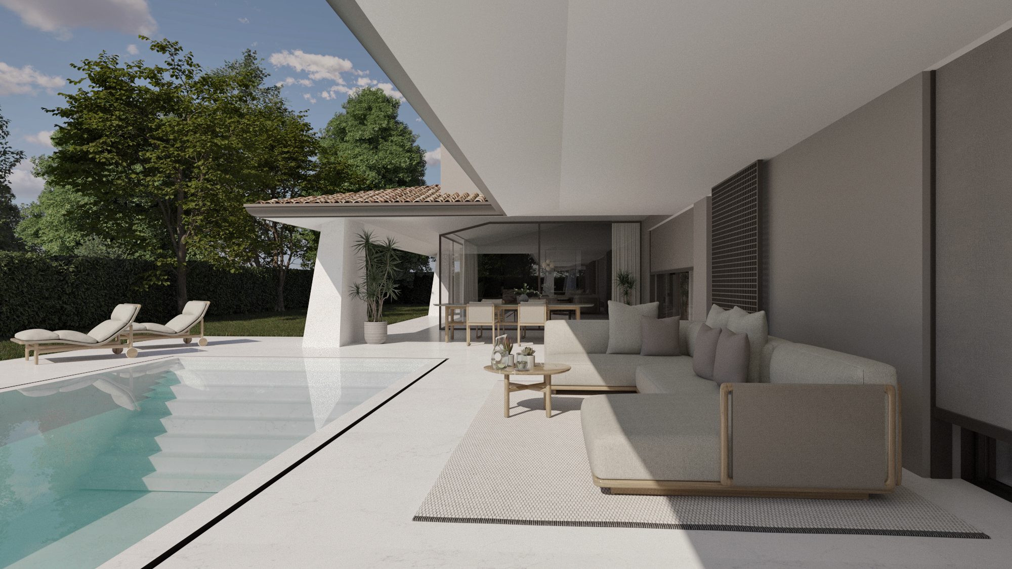 Un progetto dove la luce diventa materia, e gli spazi raccontano un’idea di vita essenziale ma raffinata. L’architettura si apre al paesaggio con linee pulite, trasparenze e volumi netti, generando continuità tra interno ed esterno.